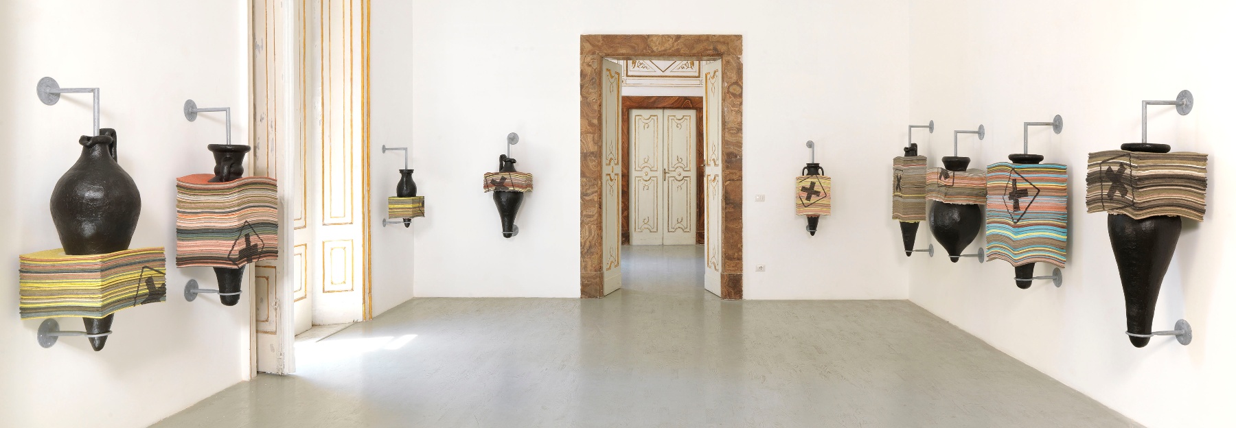 Twentysix of artistic partnership. Twentysix of patient research and investigation on the sculptural language. Perino&Vele have always played with the ability of the viewers to recognize in their sculptures a reference to their daily reality, to the objects that surround them, to the situations that they trigger but showing them through a new light and perspective. Essential tool for their practise is the papier-mache. Their vision, iconic yet ironic at the same time, is based on a sculpture’s process to be understood as a decomposition and reconstruction of the matter itself: from the pulp of paper, necessary operation to be made in order to produce the papier- mâché, to its reshaping which lend to create forms with deeper meanings. They mill newspapers of various colours, recycle the pages in a mixture of words and images, a media mixture that, once shaped, returns to communicate as a work of art. Each sculpture is silent but tells a lot of what surrounds it, it is a critical and autonomous exercise on society, on current events, on the contemporary art system, it becomes an action towards the reality. Sarcasm, a polemic vein and a deep ethical sense always remain present in their works even when the subjects diversify a lot. Within the years, the art works are getting more and more monumental, once again ironically opposing themselves to the material that constitutes its form. The two artists have develop a very recognizable and unmistakable style, nourished by continuous counterpoints and paradoxes that become symbols of this clash and encounter of different instances that bring out masterfully their artistic personality.