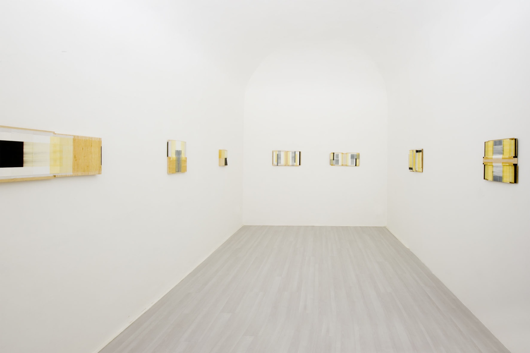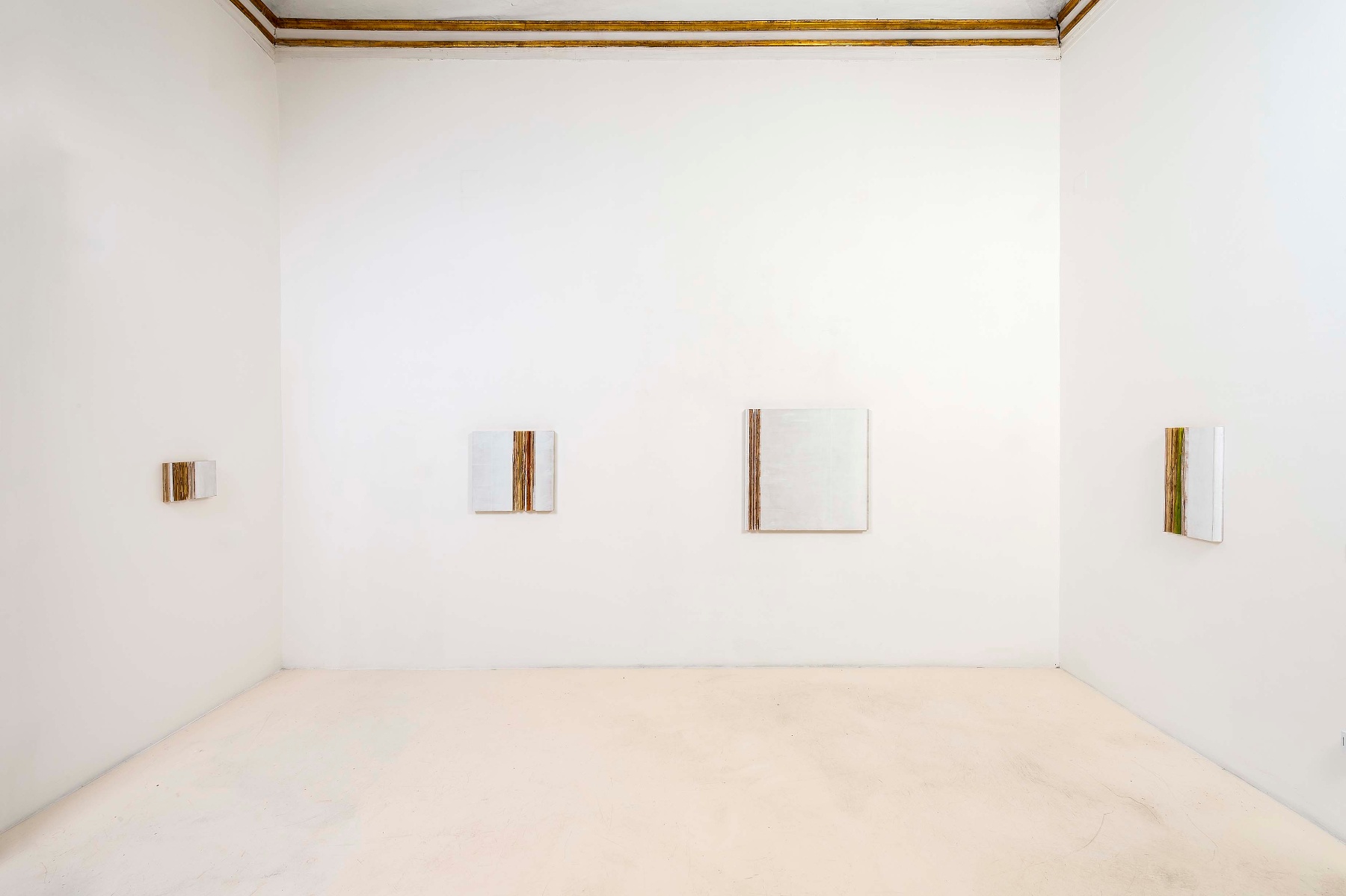 I suoi “scavi” o esposizioni progressive degli strati sottostanti il substrato di compensato che costituisce il lavoro, vengono combinati con interventi di colore e struttura e sembrano esporre una profondità ben al di sotto rispetto alla superficie del muro sul quale vengono poggiati. Questi lavori si trovano ad esistere da qualche parte tra il dipinto e la scultura, dove gli aspetti di ciascuna tecnica rivelano di essere intrinsecamente legati: il piano e la profondità, il colore e la materia, la trasparenza/traslucidità e l’opacità; la luce e l’ombra.
